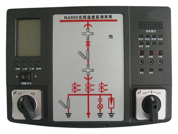 NAGE-NA990无线温度监测系统同时具备实时动态显示一次模拟图及其相应的分合位动作状态、储能指示、接地开关指示、预分预合闪光指示、带电显示及闭锁、温湿度显示及其综合电力参数测量、验电核相、语音防误提示、RS-485通信接口、DC4-20mA可编程变送口等功能并可安装多种操作旋钮和转换开关。电磁兼容性能符合GB/T17626四级要求,能够在恶劣的环境下工作。